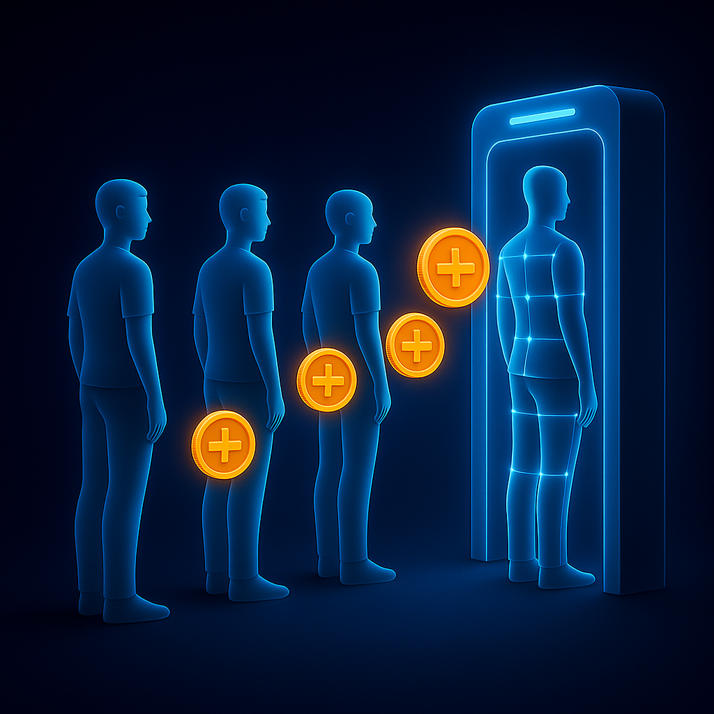 Scans are completed within seconds and processed automatically, streamlining workflows from fitting to production. Enables rapid onboarding of large teams or customer groups, ideal for retail, uniform, and event applications.