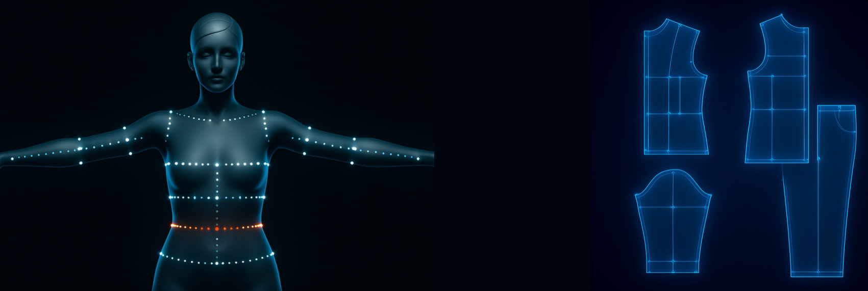 With our Custom Pattern Capability, we are building the missing digital link between body scanning and bespoke production. Our revolutionary software automatically transforms your garment pattern of your size range into a custom-fit version — powered by measurements extracted directly from a 3D scan.